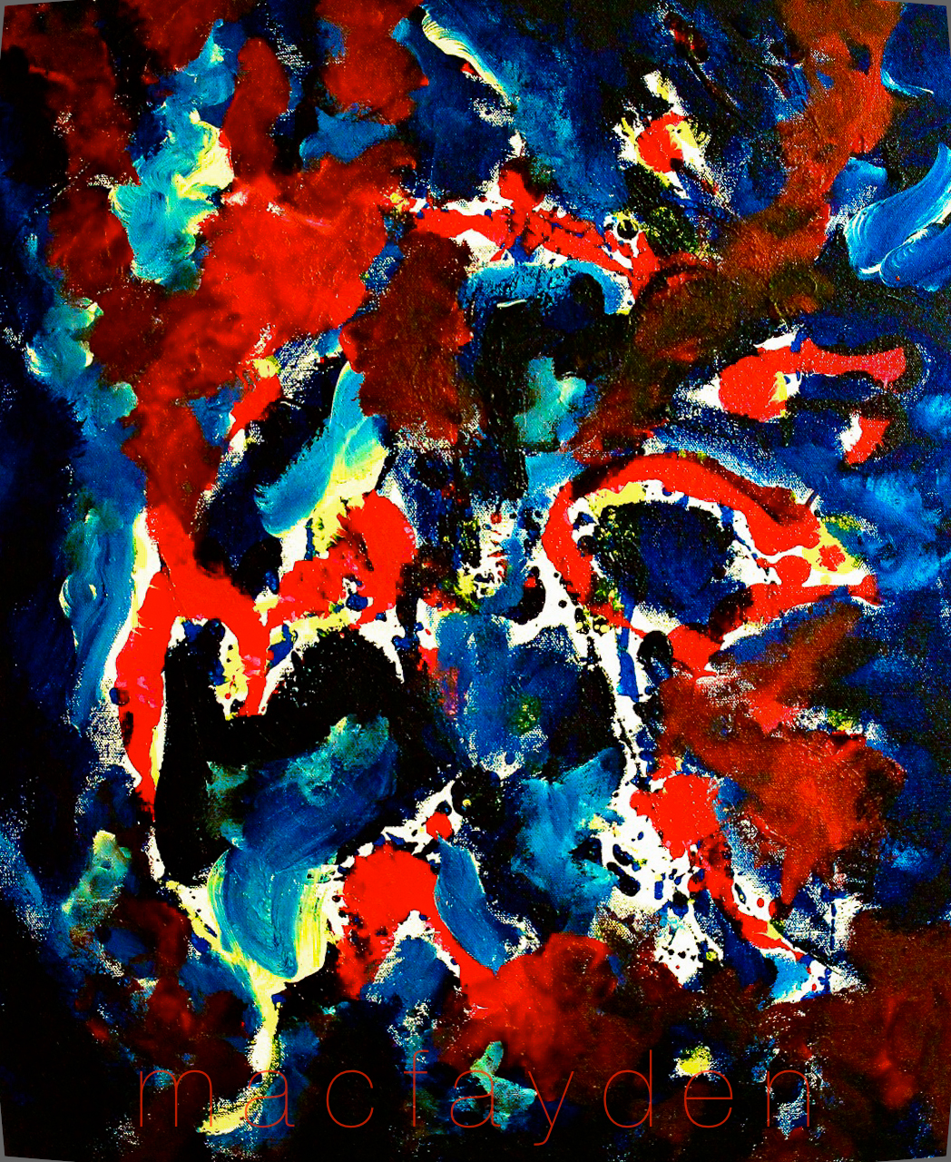 Ten Thousand Drums of Hope, acrylic on panel, Laurie MacFayden; text by Amy Willans